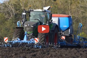 Roman Schmitz — Fendt 1042 Vario beim säen in den frühen Morgenstunden. Mit einer 6m breiten Lemken Solitair 25