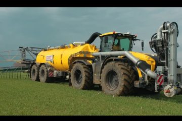 Agripictures_4K — Gülle ausbringen 2025 — Gelber Claas Xerion 5000 und Stapel.