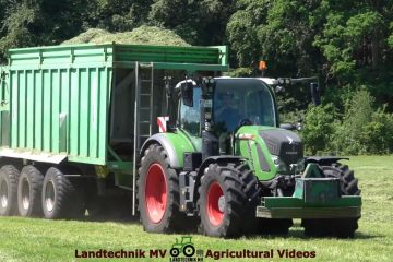 Erster Schnitt mit einem John Deere 8600i und verschiednen Fendt Traktoren mit Demmler und Krampe Anhängern für den Transport. Auf dem Silo sind ein Fendt 936 und John Deere 8370 R im Einsatz. Landtechnik MV – Agricultural Videos