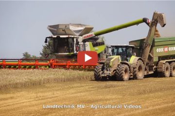 *Zwei Claas Mähdrescher 8900 der neusten Generation bei der Getreideernte haben einen MAN Motor mit 790 Ps. — Landtechnik MV – Agricultural Videos