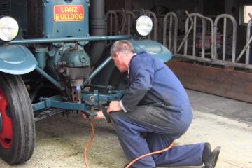 Dampf -Traktor pflügt