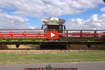 2022 Getreideernet mit zwei Claas Lexion 8900 jeweils mit 13,80 Meter Convio Schneidwerk, für die Bunkerleerung ist ein Fendt 1050 mit Hawe Tridem Überladewagen im Einsatz — Landtechnik MV – Agricultural Videos