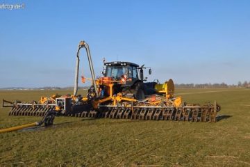 Ein Fendt 942 war an diesem wechselhaften am Festgärrest streuen. Eingearbeitet wurden diese mit einem Claas Xerion 4200. — mnagrar