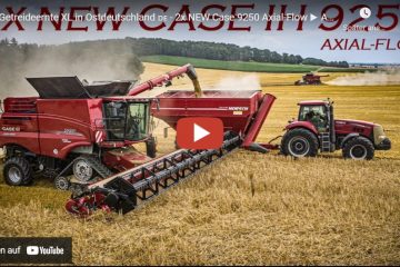 Getreideernte XL in Ostdeutschland 2021 — 3 Case Mähdrescher im Einsatz. (2 Nagelneue 9250) Case Magnum mit Horsch Überladewagen — Agriculture Germanyy