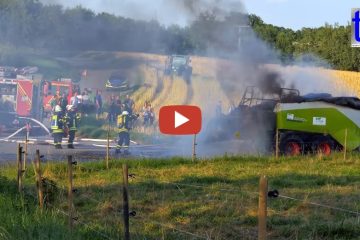 Zwingelhausen, CLAAS QUADRANT 3200 RC Feuerwehr bei Brand Ballenpresse,,
