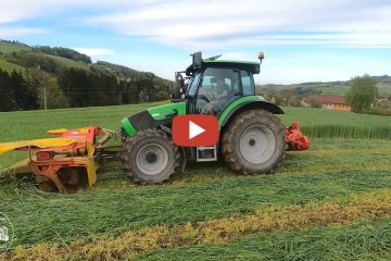 Glosara Agrar – Grünroggen mähen beim 1 Schnitt 2021 mit einem Deutz Fahr Agrotron K 120 — Landwirtschaftliche Maschinen im Einsatz