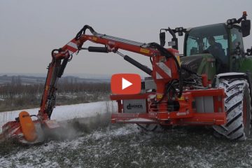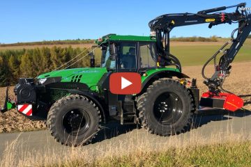 Roman Schmitz 2023 — Agrarservice Fleischmann mit einem neuen Fendt 724 One und einem neuen Dücker Auslegemulcher beim Mäulchen von Wasserläufen.