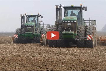 2 John Deere 9630 im Parallelflug , beide jeweils mit Horsch Tiger 8 AS , bei der Bodenbearbeitung. — Landtechnik MV