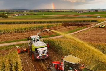 Maissilage bei wunderschönem Regenbogen mit einem Claas Jaguar 960. Fendt, Case ih unf MF Traktoren. Drone pilot🚜 Magali Hoffmann