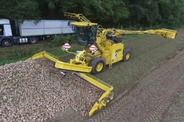 Ropa EuroMaus 4 am Rüben laden in der Rübensaison 2015. Übergeladen wurde auf Mercedes-Benz LKWs. -Roman Schmitz-