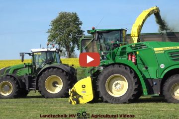 2022 LU. Blunk beim ersten Schnitt mit einem John Deere 8600i Häcksler und verschiedenen Fendt Traktoren mit Krone und Tebbe Anhängern. — Landtechnik MV – Agricultural Videos
