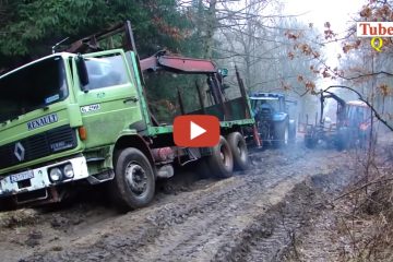 Super Traktoren, die Lastwagen aus dem Schlamm ziehen