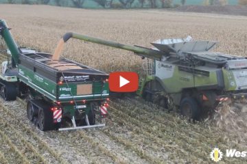 Mais dreschen 2021 mit einem Claas Lexion 770 C66 & Claas Challenger 85E + Haulmaster GrainCart-Westhoff Agrar Fendt und John Deere Traktoren.. Motion-ProMovie