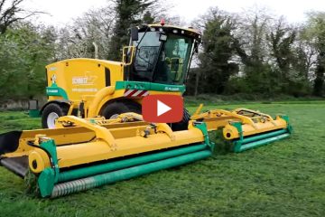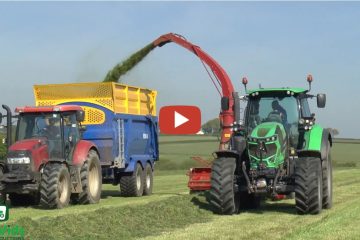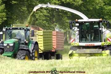 Gras Ernte bei Goch, NRW, Germany im April 2024. Ploeger CM 4240 und New Holland Häcksler im Gras. — Landmaschinen und Fahrzeuge!