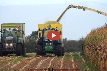 Maissilage mit einem Krone BigX 1180, für den Transport sind verschiedene John Deere und Fendt Traktoren, sowie ein MAN AgroTruck im Einsatz. Auf dem Silo arbeiten ein John Deere 9520R und 8320R. — Landtechnik MV – Agricultural Videos