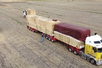 Strohballentransport und Rapsernte in Australien mit Case ih Mähdreschern.