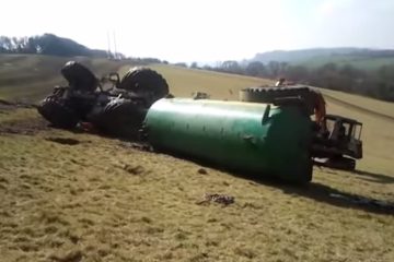 Unfall: Umgestürzter Traktor samt Anhänger auf der Wiese