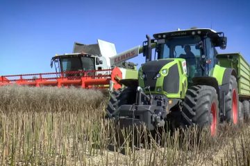 Ein Fendt Ideal 10T mit einem 12 Meter Fendt PowerFlow Schneidwerk bei der Rapernte 2023 — Stefan Lübke