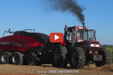 Ballenpressen mit dieser Superkombination aus CASE IH 1455 und LB434R-Ballenpresse … Offenes Rohr … Traktor-Spotter