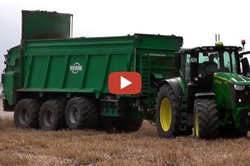 Trecker Marc — Ausbringen von Separierter Gärrest 2022 — John Deere 6250R mit ein Tridem – Streuer Tebbe HS 320