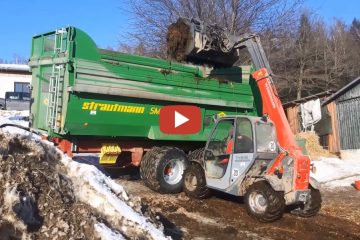 Ausmisten mit Weidemann, Fendt 516 ,Strautmann SHK 2002 und Pferde im Auslauf — Biohof Hunger