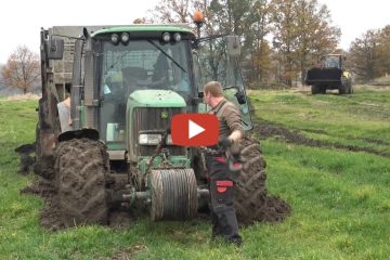 Ausbringen von Mist und Pflügen im Schlamm in der Tschechischen Republik mit John Deere-Traktoren – pavelkubes1