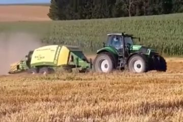Ein Traktor mit zwei Ballenpressen