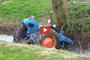 Traktor rammt Land Rover weg von der Straße und in Graben