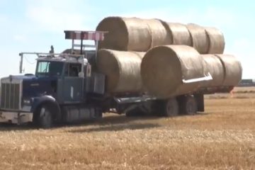 Laden großer Strohballen USA.