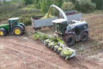 Maisernte 24 mit einem Claas Jaguar 980, und einem 12 Reihen Claas Orbis 900. Fendt Traktoren. – Stefan Lübke