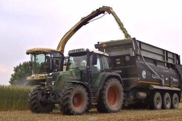 Im Einsatz sind Fendt 9470x mit Raupenfahrwerk und einem 9,20 m Schneidwerk sowie einen Fendt 8300 mit einem Schneidwerk von 6,80 m.