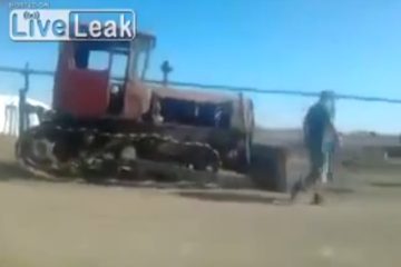 Ein Mann Ein Traktor Ein Bulldozer springt nicht an .russischen Ingenuity = Genie!