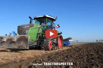 Tractorspotter –,Pflügen mit einem Fendt 943 vario MT mit 8 Furche Lenken Vari Diamant 16 on-land Pflug.