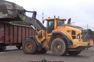 Lu. Blunk bei der Verladung von Zuckerrüben auf Güterwaggons für die Schweiz mit einem Volvo L180H Radlader. — Landtechnik MV – Agricultural Videos