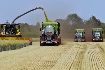 AgrarBlick – 20 Fahrzeuge – Großeinsatz beim Silomais häckseln im Landkreis Uelzen bei Rosche in Niedersachsen für eine Biogasanlage.