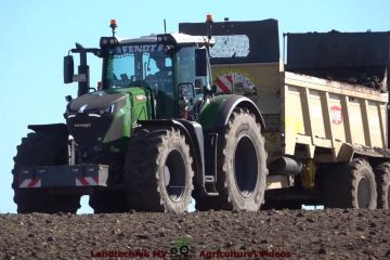 Zuckerrüben ohne Abnehmer. Ganzenmüller Agrar beim Rübenstreuen mit zwei Fendt 936, jeweils mit einem Hawe DST 16 Dungstreuer. Für die Beladung ist ein Volvo L110G im Einsatz. Landtechnik MV – Agricultural Videos