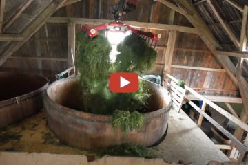 feruontour — Grassilo in der Scheune füllen mit einem Stepa Heukran und einem Fendt 310 Vario mit einem Pöttinger Primo351 mit Kurmann Achse.