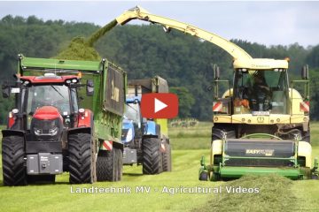 Lu. MMV mit einem Krone Big X 630 und EasyFlow 300S beim zweiten Schnitt. Für den Transport sind verschiedene Case und New Holland Traktoren im Einsatz — Landtechnik MV – Agricultural Videos