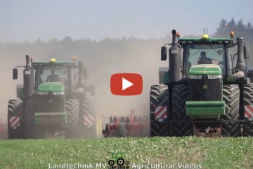Aussaat der Zwischenfrucht mit zwei John Deere 9620R auf Zwillingen, jeweils mit Horsch Tiger 8AS und Horsch Pronto 8TD. — Landtechnik MV / Farm Technology MV