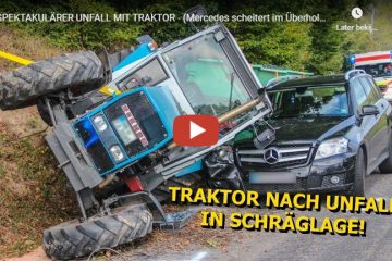 Spektakulärer Traktor-Unfall bei Beilstein: Mercedes touchiert Traktor mit Anhänger bei Überholmanöver. — Einsatz-Report24