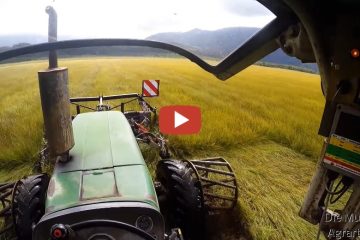 Deutz 4006 A mit Eigenbaugitterräde und Schmetterling. Streuwiese mähen