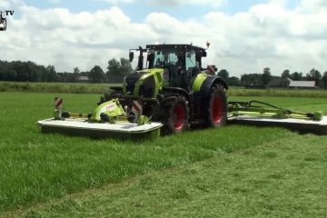 Claas Axion 870 beim Wiesenschnitt mit Claas Disco 3200 FC und Claas Disco 1100 C — landmaschinenfilme