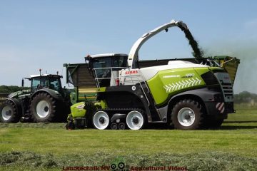 Agrarservice MV bei der Grassilage mit einem Claas Jaguar 990 TT und verschiedenen Fendt Traktoren mit Krone TX 560 Anhängern für den Transport. Ein Fendt 720 mit Claas Liner 4000 ist beim schwaden zu sehen. Landtechnik MV – Agricultural Videos