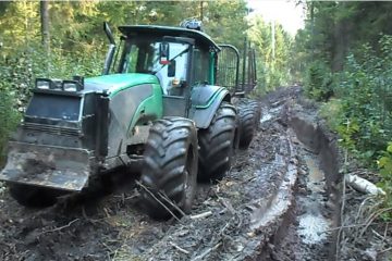 Valtra Forsttraktor mit großen hausgemachten Anhänger