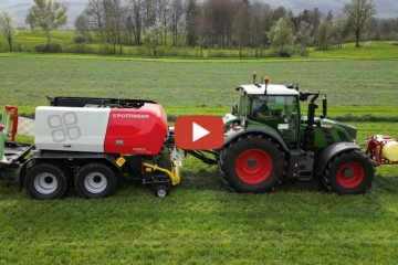 PB Agrar — Erster Schnitt – Grassilage mit Fendt 724 Vario & Pöttinger Impress 3130 FC Pro. NEU !!! Siloballenpresse mit 32 Messer, Top Schnittqualität mit Mantelfolie gebunden und 8-fach gewickelt
