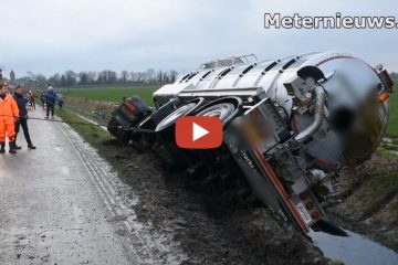 LKW fährt mit einem vollen Gülletank in den Graben
