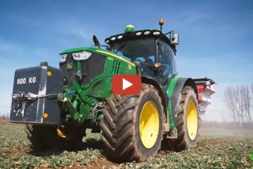 John Deere 6195R mit Kverneland DS-EDW beim Dünger streuen auf Rapsflächen. Zum beladen kam ein John Deere 7230R zum Einsatz. — Agrar – Impressionen