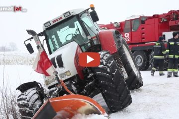 Traktor kam beim Schneeräumen in Sipbachzell von der Fahrbahn ab — laumat.at media e.U.