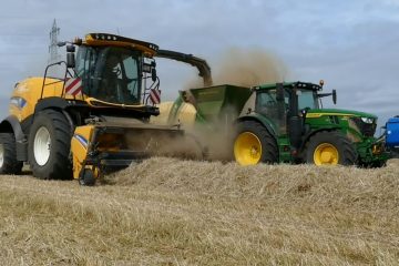 Heulage pressen einmal anders. Ein New Holland FR 650 häckselt Heu welches in einer Krone Big Pack 1270 gepresst wird. Agrartechnik im Einsatz – Agriculture Videos