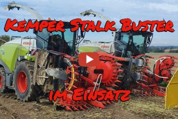 Zu sehen ist der Einsatz des neuen Maisgebisses von Kemper: StalkBuster. Der 6 Meter Vorsatz hat einen zusatzlichen Unterbau um die Maisstoppeln zu Mulchen. — ChickenBoettcher